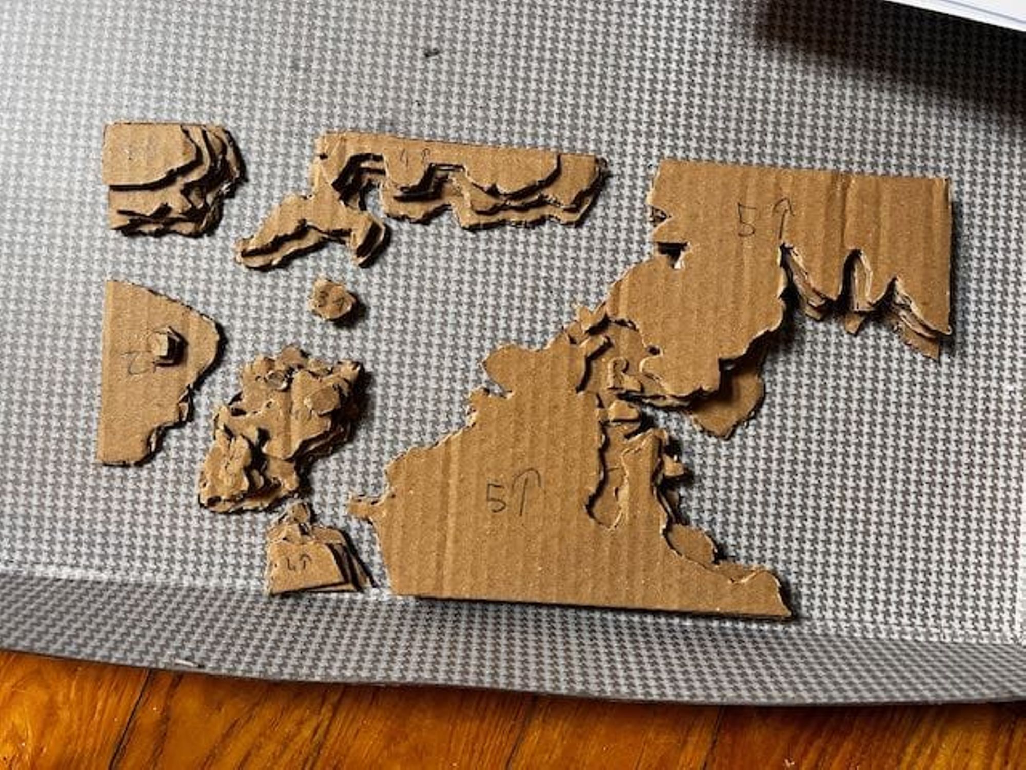 - Utiliser ces feuilles comme patron pour découper les couches de carton (voir les photos).