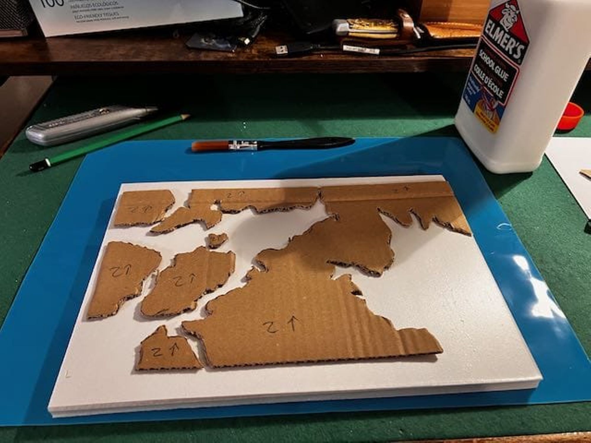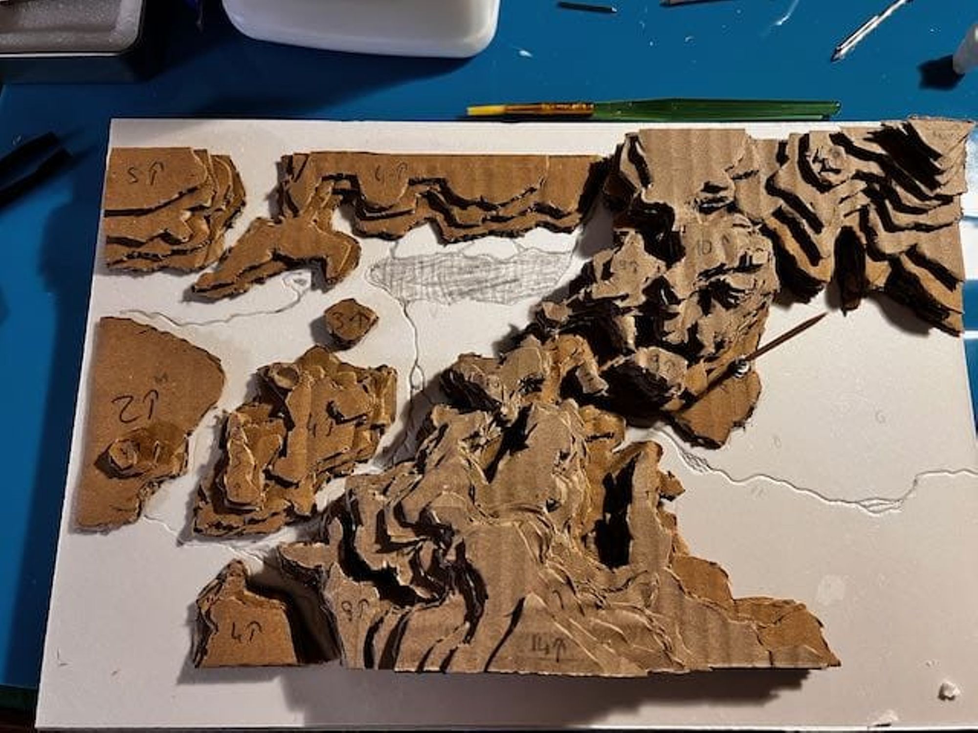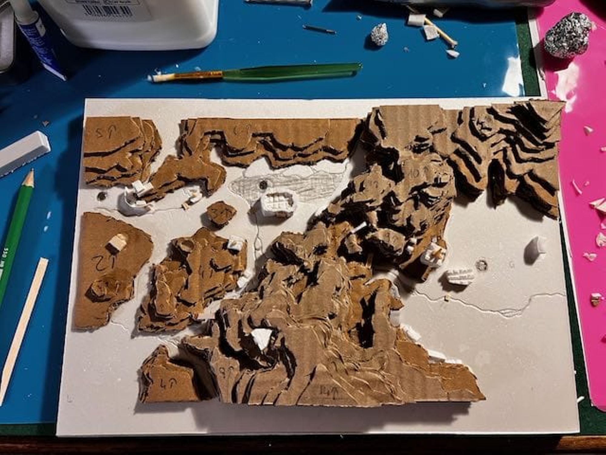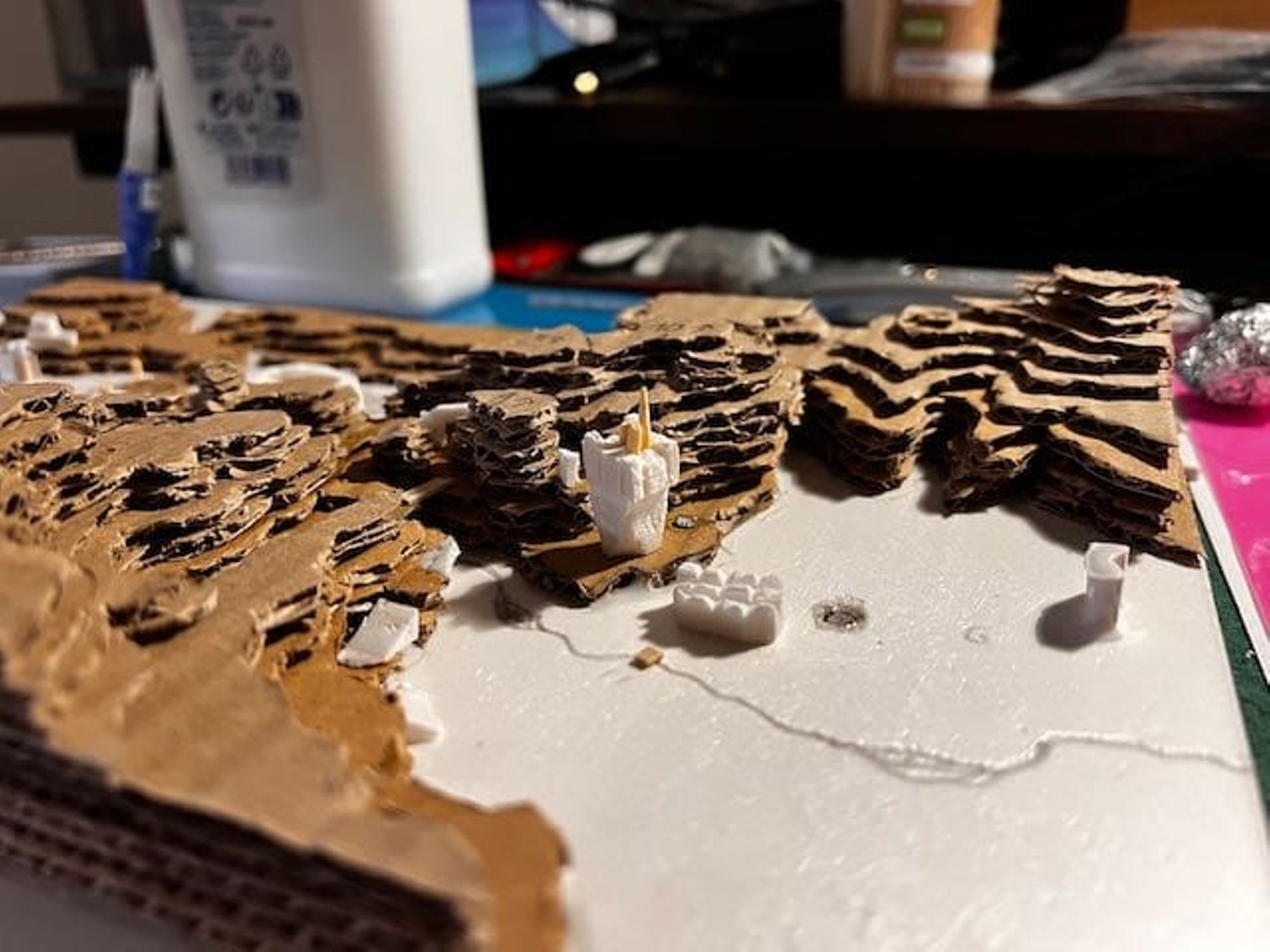 - Petits morceaux de mousse XPS, cure-dents en bois, carton, etc. pour faire des détails sur la carte