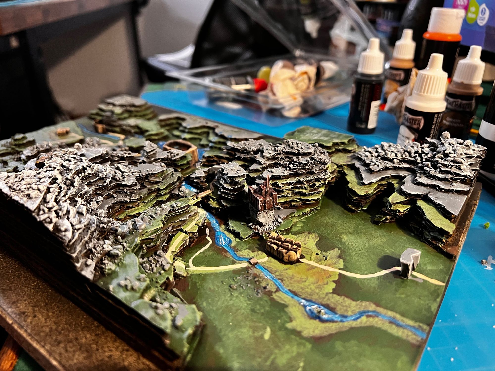 - Gravier de décors (trouvé dans des magasins d'art ou Action) pour coller sur les montagnes