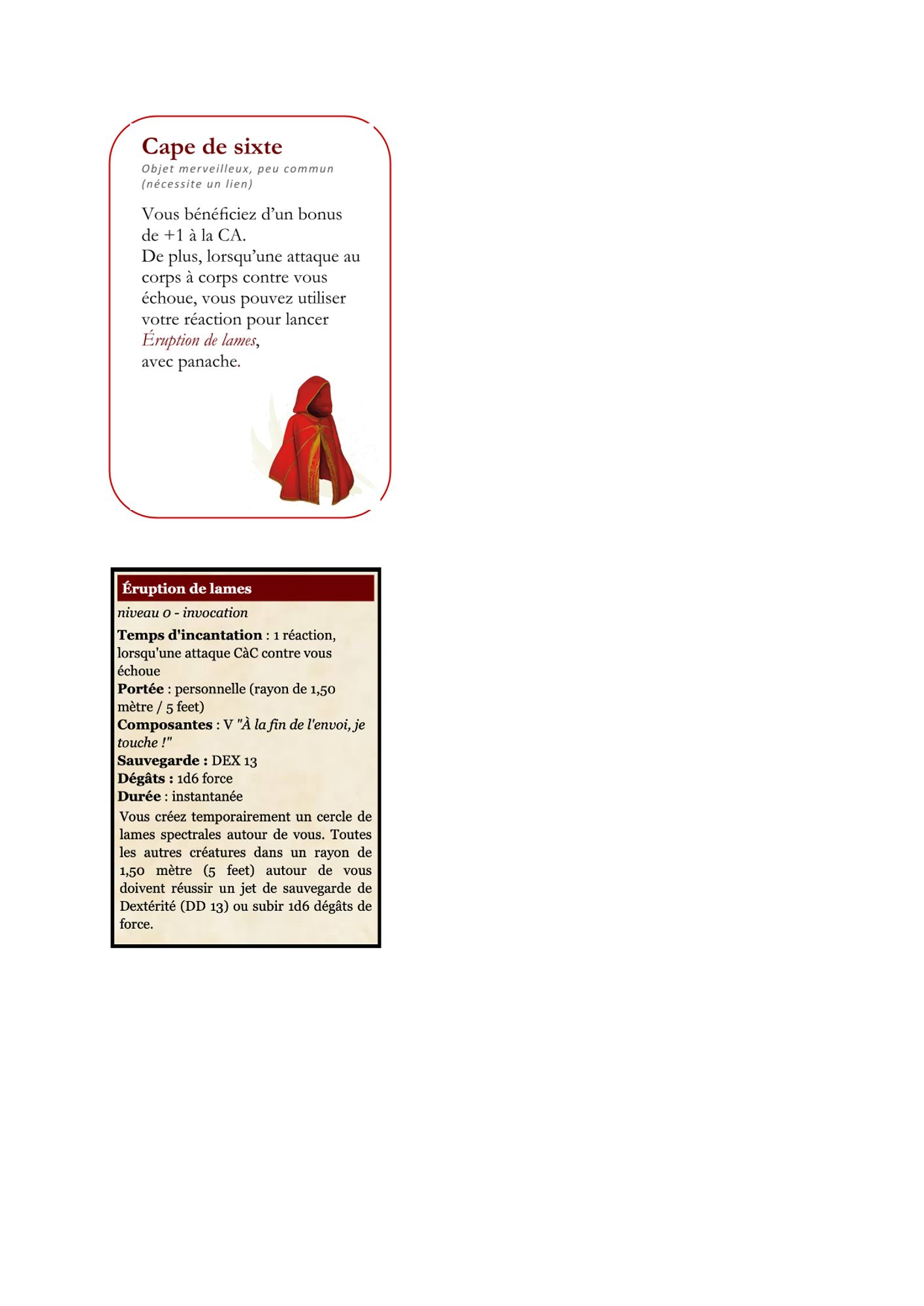 De plus, lorsqu’une attaque au corps à corps contre vous échoue, vous pouvez utiliser votre réaction pour lancer Éruption de lames, avec panache.