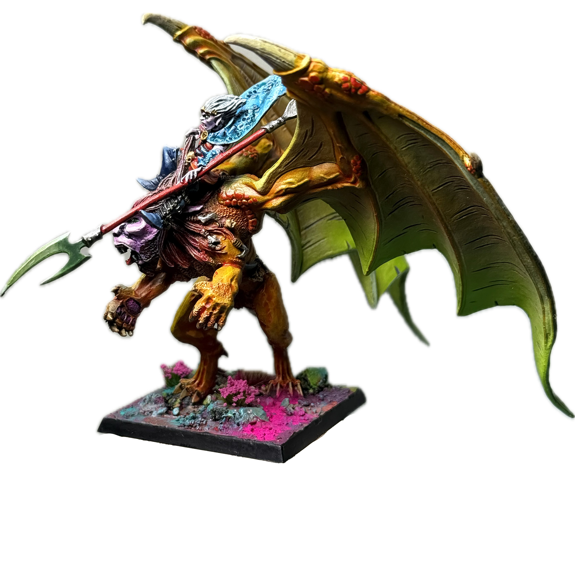 Pour le thème, je m'inspire des Drows et de l'outreterre/Underdark du monde de Faerun (D&D), spécifiquement la version très colorée que l'on retrouve dans le jeu Baldur's Gate 3, ce qui évoque aussi les figurines très saturées des années 90/2000.